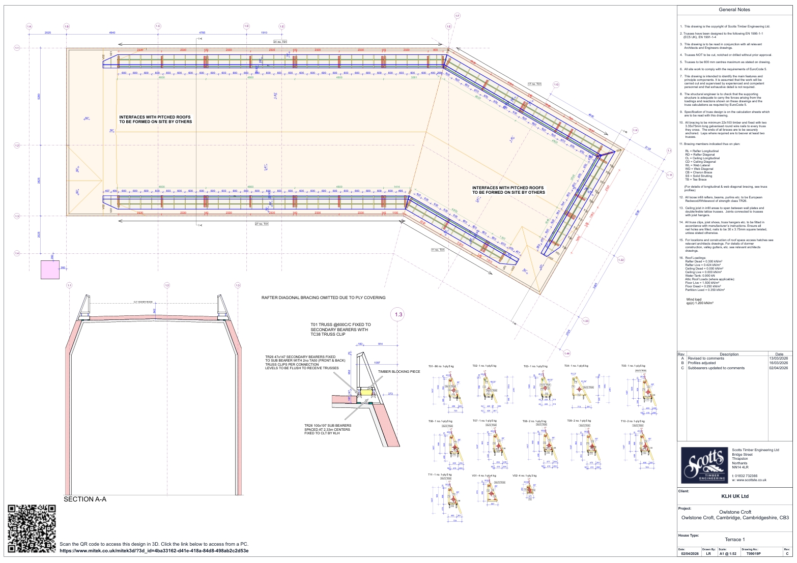 Our involvement centres around a highly bespoke truss design that plays a critical role in forming the parapet detail. These trusses extend the CLT mansard structure, seamlessly integrating the structural timber system with the external insulation panels. The design incorporates asymmetric trusses running along pole plates, which are fixed to sub-bearers and ultimately tied back to the CLT structure itself.
